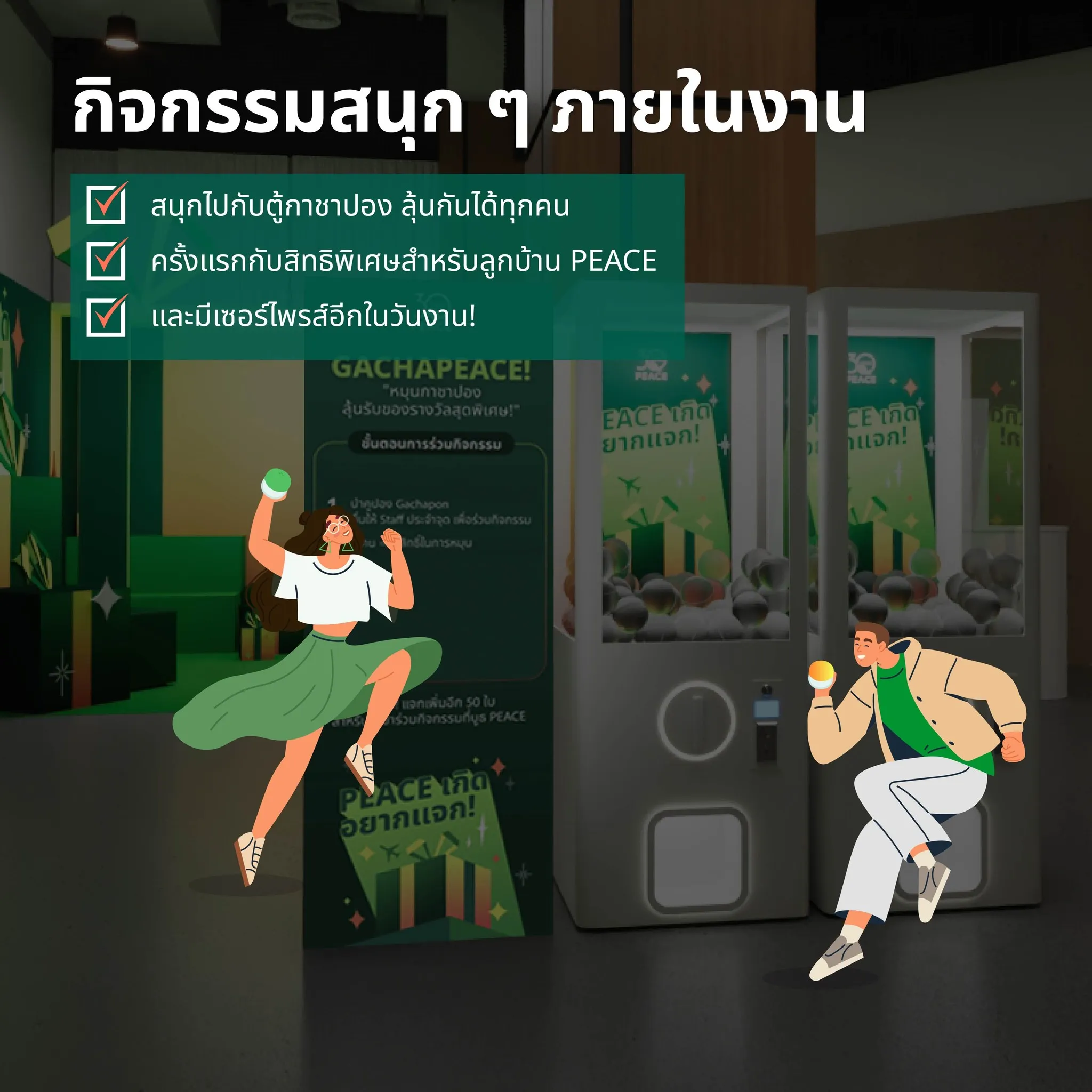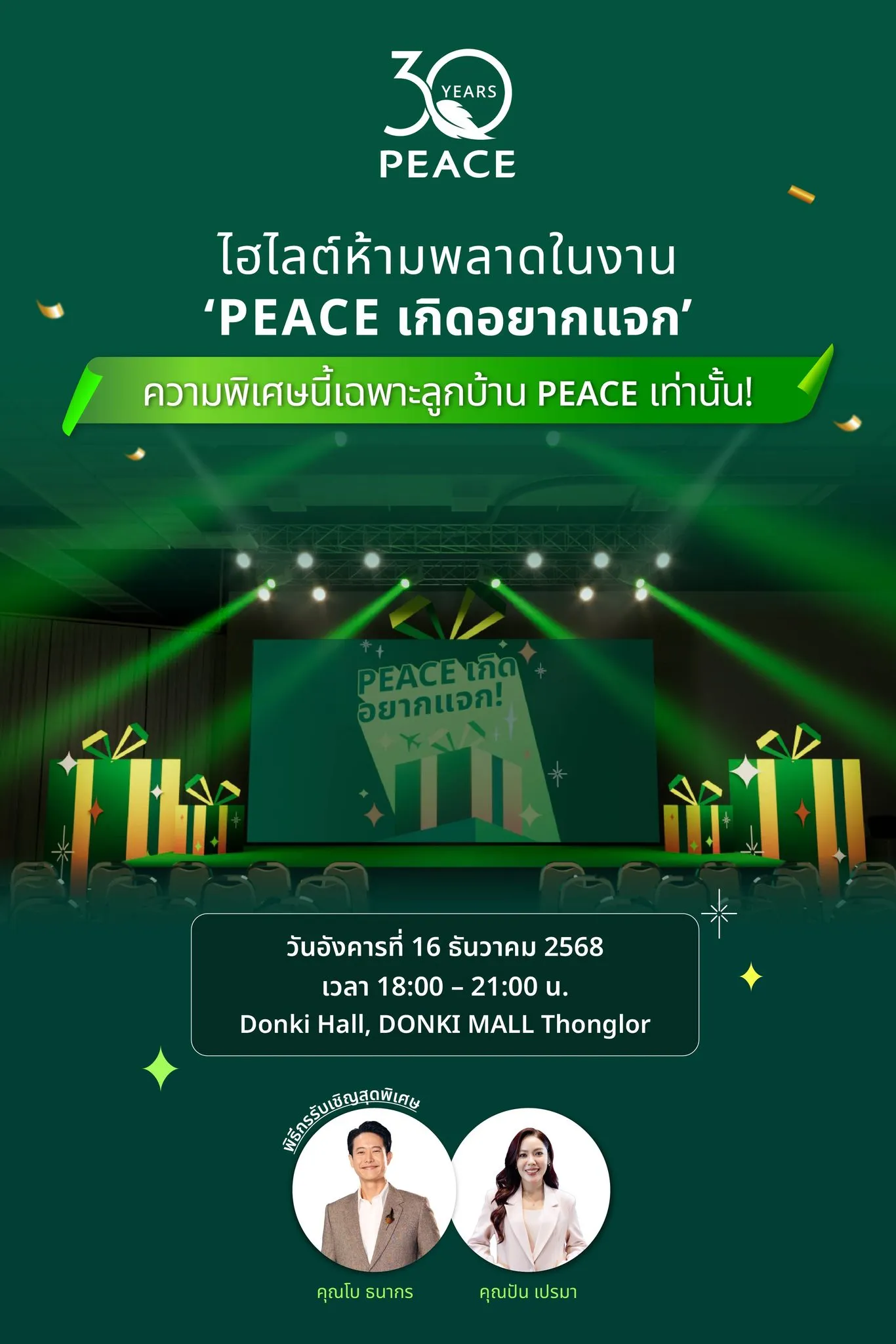 ปีนี้ PEACE ตั้งใจมอบประสบการณ์พิเศษให้ลูกบ้านได้ร่วมลุ้น ร่วมสนุก และร่วมฉลองความสุขครั้งใหญ่ด้วยกัน ผ่านกิจกรรมและรางวัลมากมายที่จัดมาเต็มรูปแบบตลอดทั้งงาน