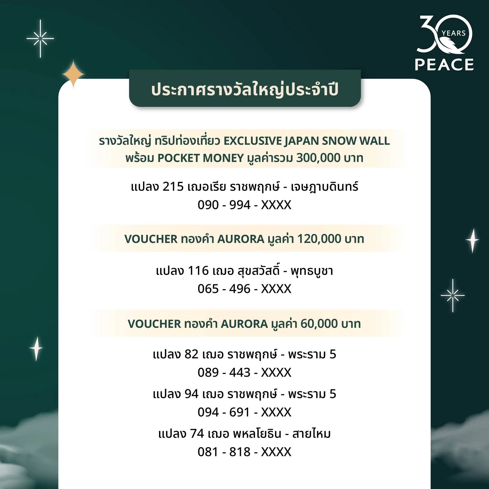 รายชื่อผู้ได้รับรางวัล PEACE เกิดอยากแจก